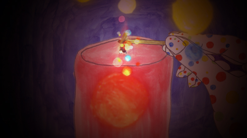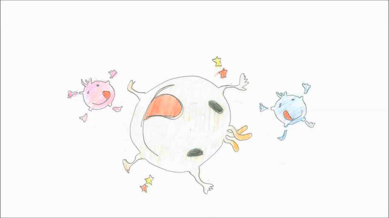 | 子どもの頃に見た世界は大げさで、おもしろみのある世界だった と思いながら制作しました。 (2Dアニメーション) |